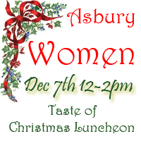 Join the Asbury Women for the Taste of Christmas Luncheon!Bring your favorite recipe you enjoy at Christmas time!Saturday, December 7th, 12:00-2:00 p.m. |